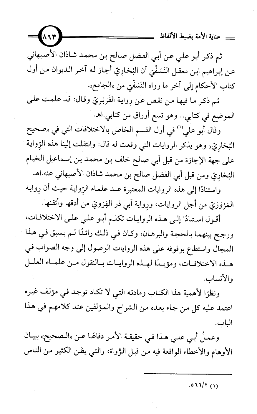وقال أبو علي (¬1) في أول القسم الخاص بالاختلافات التي في «صحيح البُخارِيّ» وهو يذكر الروايات التي وقعت له قال: وانتقلت إلينا هذه الرِّواية على جهة الإجازة من قبل أبي صالح خلف بن محمد بن إسماعيل الخيام البُخارِيّ ومن قبل أبي الفضل صالح بن محمد شاذان الأصبهاني عنه. اهـ.