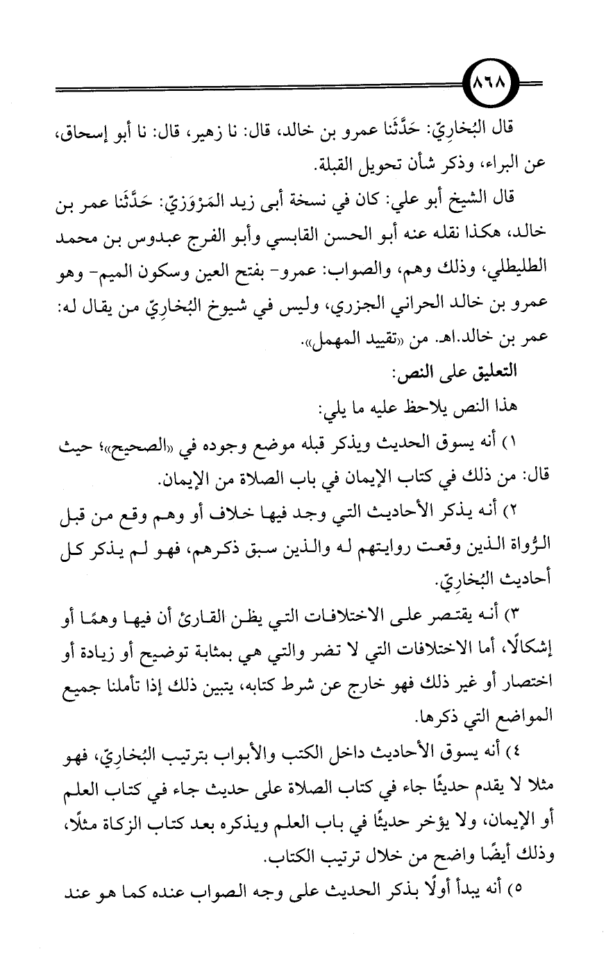 قال البُخارِيّ: حَدَّثَنا عمرو بن خالد، قال: نا زهير، قال: نا أبو إسحاق، عن البراء، وذكر شأن تحويل القبلة.