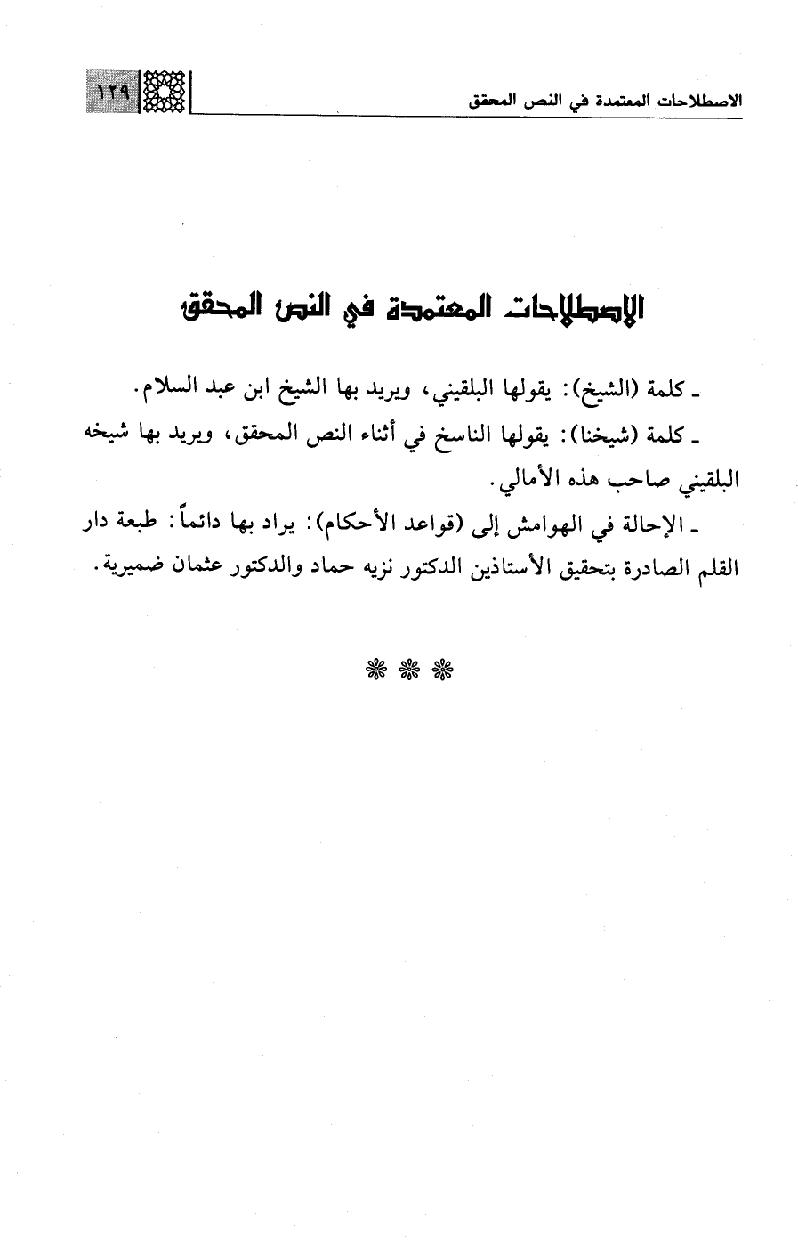 - الإحالة في الهوامش إلى (قواعد الأحكام)؛ يراد بها دائمًا: طبعة دار القلم الصادرة بتحقيق الأستاذين الدكتور نزيه حماد والدكتور عثمان ضميرية.