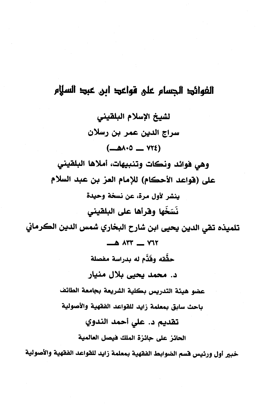 الفوائد الجسام على قواعد ابن عبد السلام