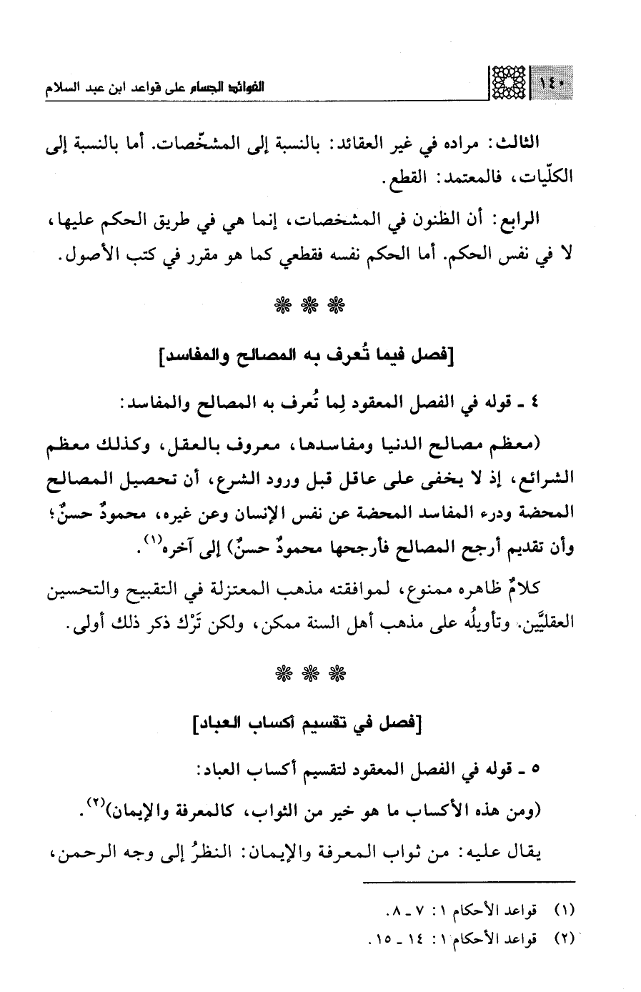 (¬2) قواعد الأحكام 1: 14 - 15.