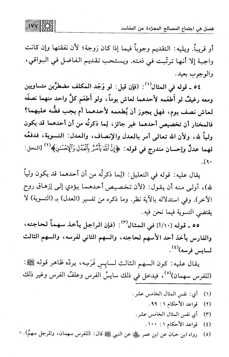 55 - قوله في المثال (¬3): (فإن الراجل يأخذ سهمًا لحاجته، والفارس يأخذ أحد الأسهم لحاجته، والسهم الثاني لفرسه، والسهم الثالث لسايس فرسه) (¬4).