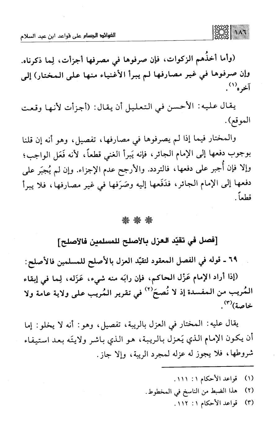 (¬3) قواعد الأحكام 1: 112.