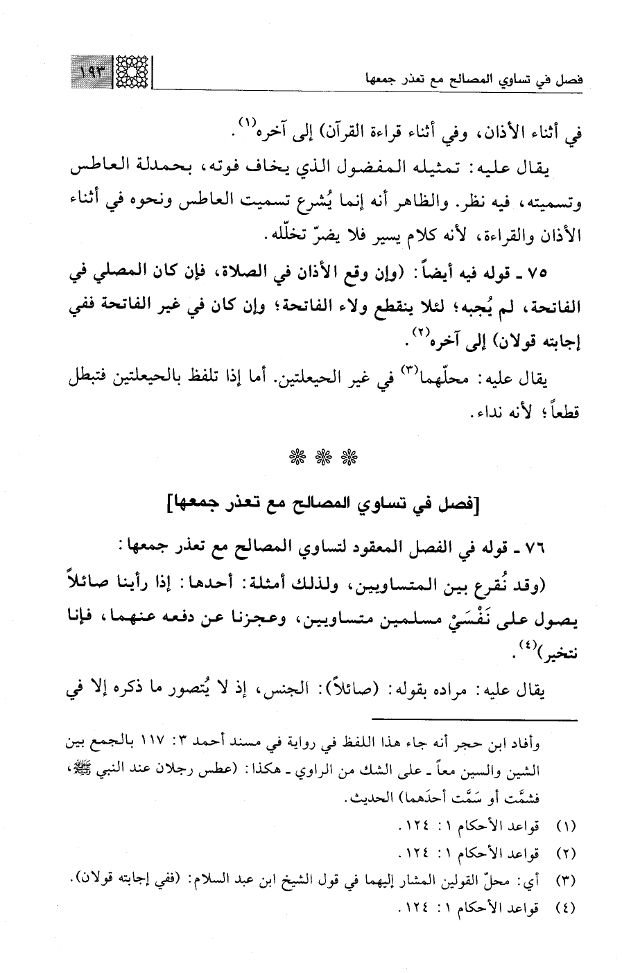 76 - قوله في الفصل المعقود لتساوي المصالح مع تعذر جمعها: