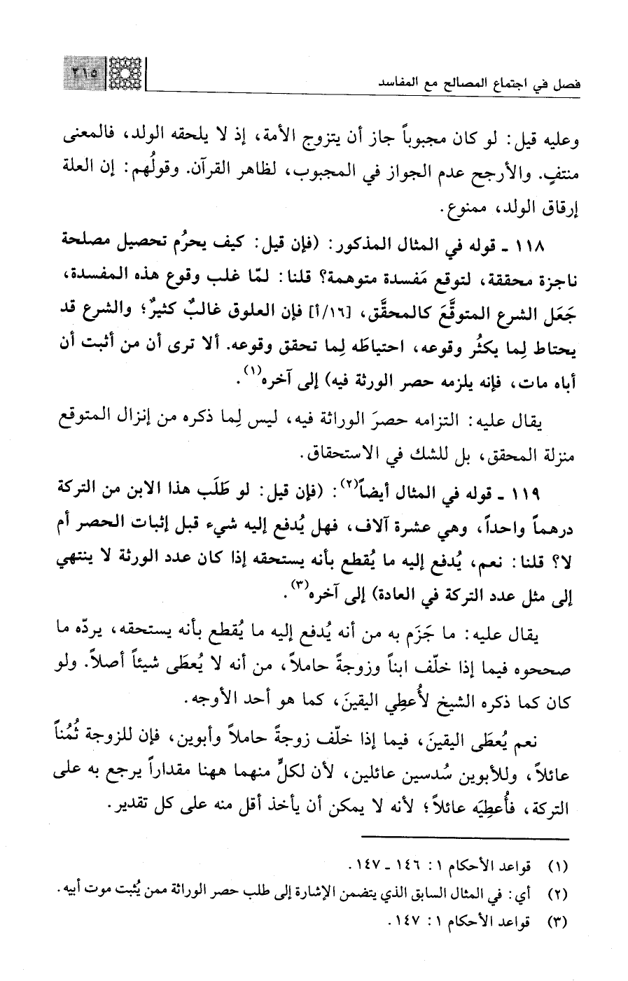 (¬1) قواعد الأحكام 1: 146 - 147.