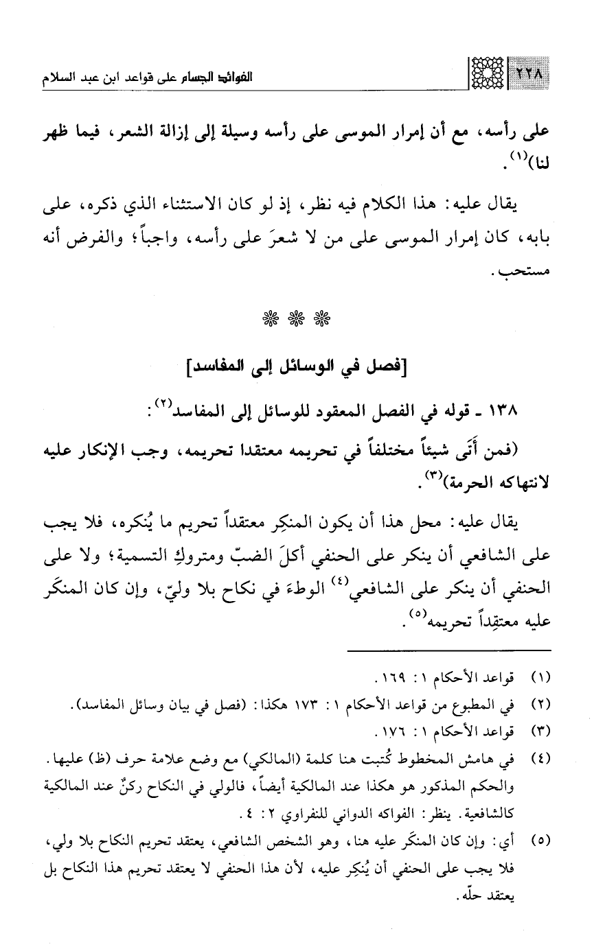 138 - قوله في الفصل المعقود للوسائل إلى المفاسد (¬2):