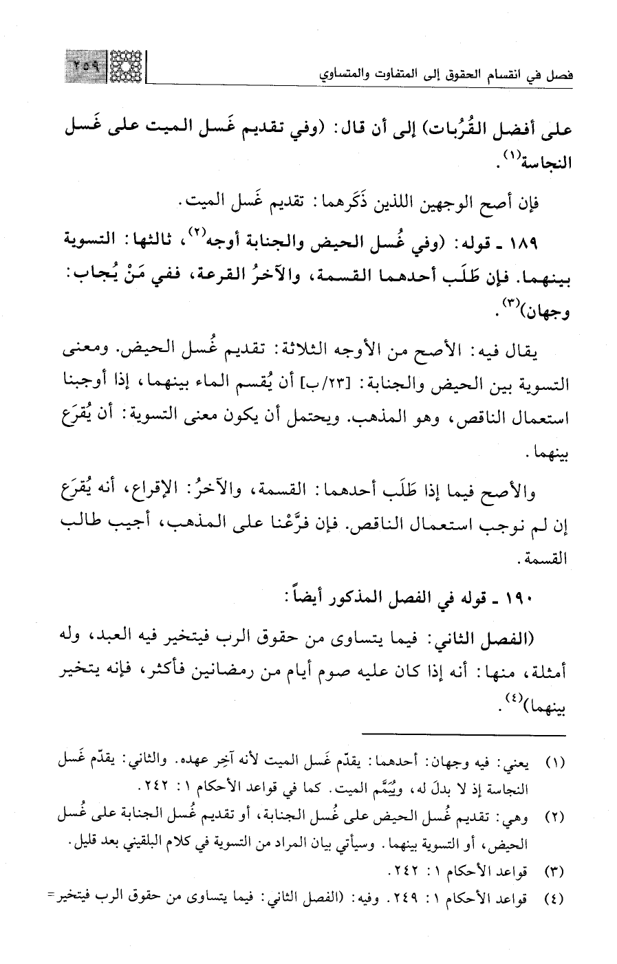 (¬4) قواعد الأحكام 1: 249. وفيه: (الفصل الثاني: فيما يتساوى من حقوق الرب فيتخير =