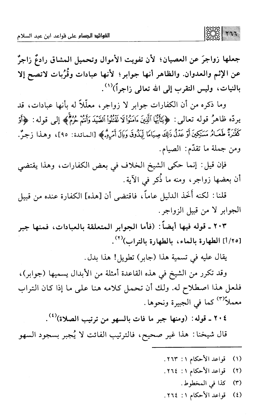 203 - قوله فيها أيضًا: (فأما الجوابر المتعلقة بالعبادات، فمنها جبير الطهارة بالماء، بالطهارة بالتراب) (¬2).