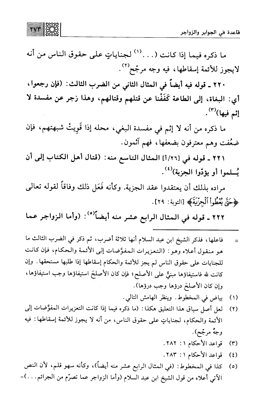 221 - قوله في المثال التاسع منه: (قتال أهل الكتاب إلى أن يُسلموا أو يؤدّوا الجزية) (¬4).