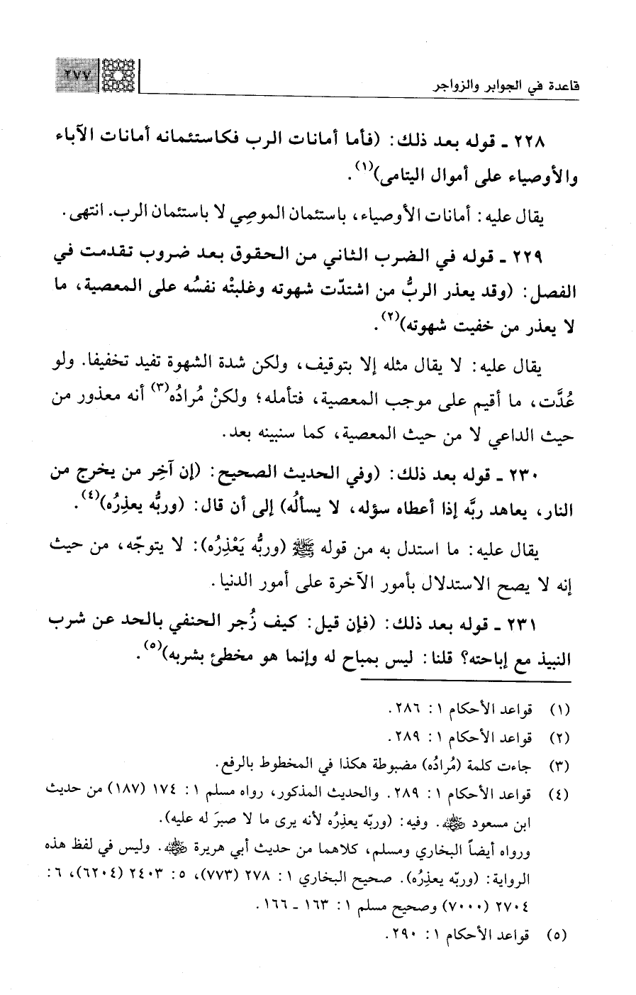 (¬4) قواعد الأحكام 1: 289. والحديث المذكور، رواه مسلم 1: 174 (187) من حديث ابن مسعود - رضي الله عنه -. وفيه: (وربّه يعذِرُه لأنه يرى ما لا صبرَ له عليه).