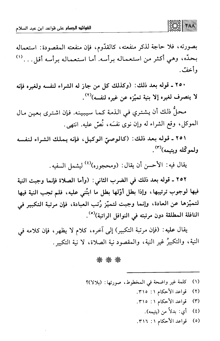 250 - قوله بعد ذلك: (وكذلك كل من جاز له الشراء لنفسه ولغيره فإنه لا ينصرف لغيره إلا بنية تميّزه عن غيره لنفسه) (¬2).