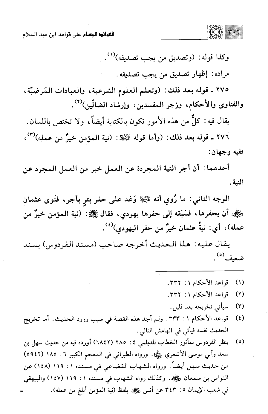 (¬4) قواعد الأحكام 1: 333. ولم أجد هذه القصة في سبب ورود الحديث. أما تخريج الحديث نفسه فيأتي في الهامش التالي.