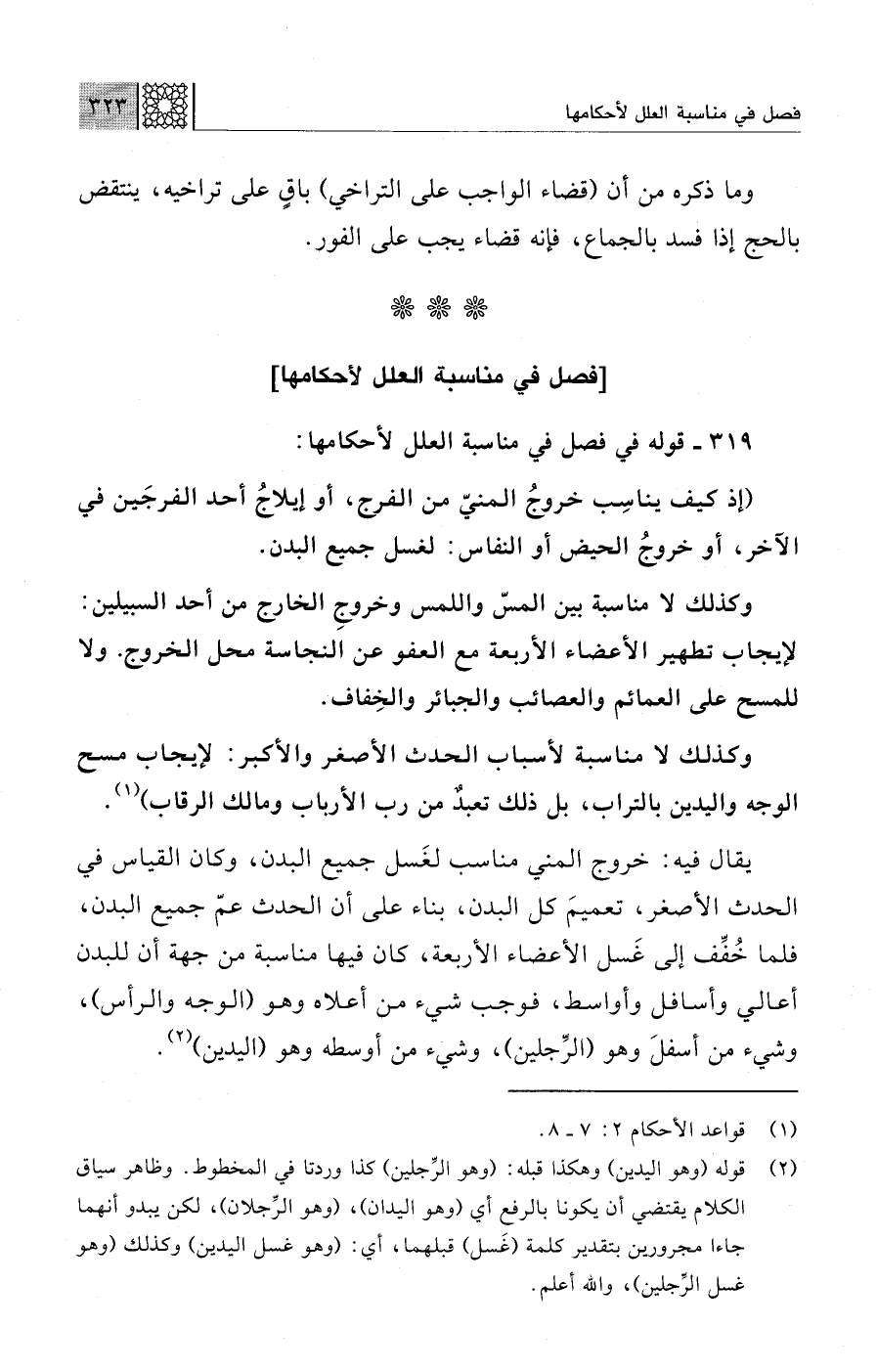 319 - قوله في فصل في مناسبة العلل لأحكامها: