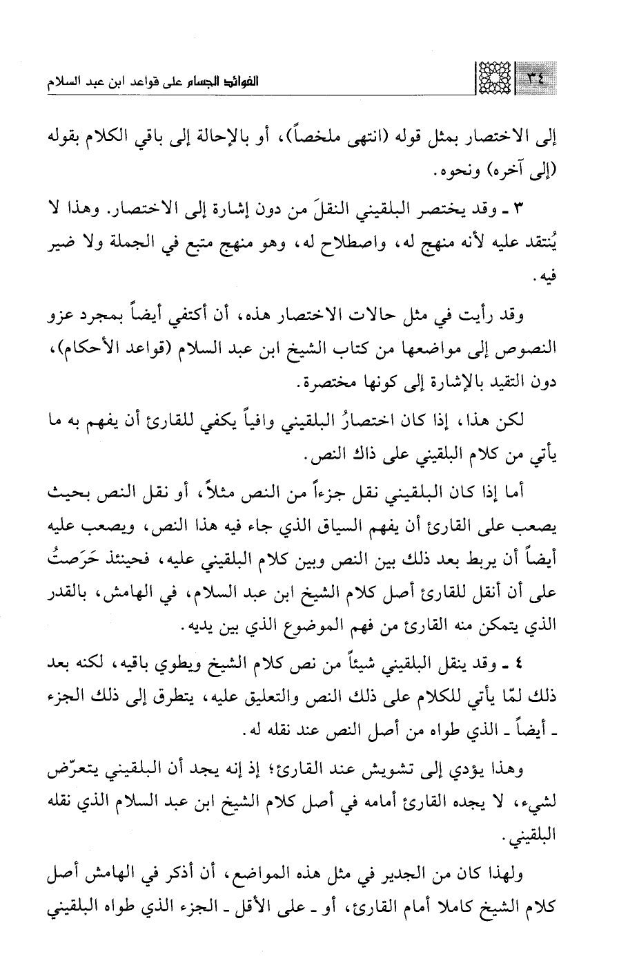 وقد رأيت في مثل حالات الاختصار هذه، أن أكتفي أيضًا بمجرد عزو النصوص إلى مواضعها من كتاب الشيخ ابن عبد السلام (قواعد الأحكام)، دون التقيد بالإشارة إلى كونها مختصرة.