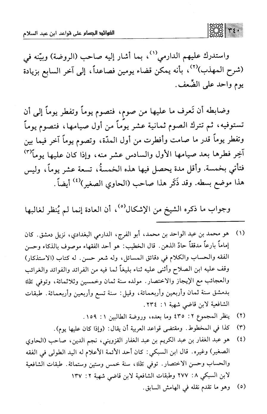 (¬4) هو عبد الغفار بن عبد الكريم بن عبد الغفار القزويني، نجم الدين، صاحب (الحاوي الصغير) وغيره. قال ابن السبكي: كان أحد الأئمة الأعلام له اليد الطولى في الفقه والحساب وحسن الاختصار. توفي رحمه اللهُ، سنة خمس وستين وستمائة. طبقات الشافعية لابن السبكي 8: 277 وطبقات الشافعية لابن قاضي شهبة 2: 137.