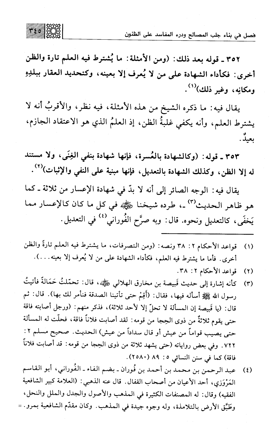 (¬1) قواعد الأحكام 2: 38 ونصه: (ومن التصرفات، ما يشترط فيه العلم تارةً والظن أخرى. فأما ما يشترط فيه العلم، فكأداء الشهادة على من لا يُعرف إلا بعينه ...).