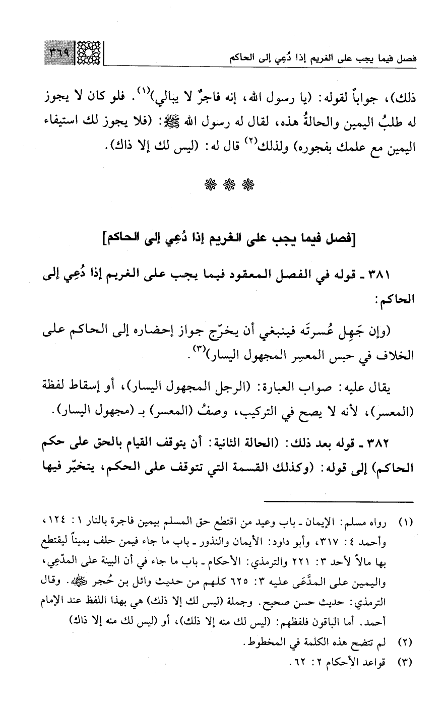 381 - قوله في الفصل المعقود فيما يجب على الغريم إذا دُعِي إلى الحاكم:
