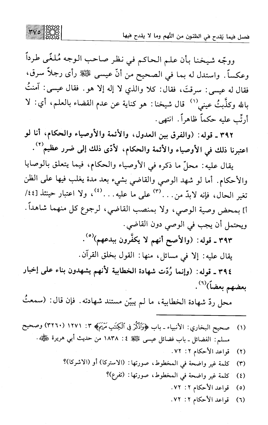 392 - قوله: (والفرق بين العدول، والأئمة والأوصياء والحكام، أنا لو اعتبرنا ذلك في الأوصياء والأئمة والحكام، لأدّى ذلك إلى ضرر عظيم (¬2).