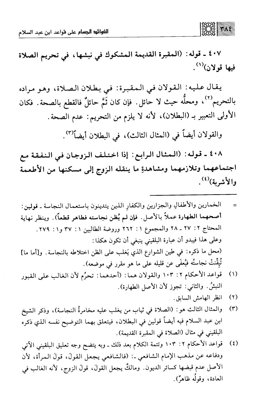 407 - قوله: (المقبرة القديمة المشكوك في نبشها، في تحريم الصلاة فيها قولان) (¬1).