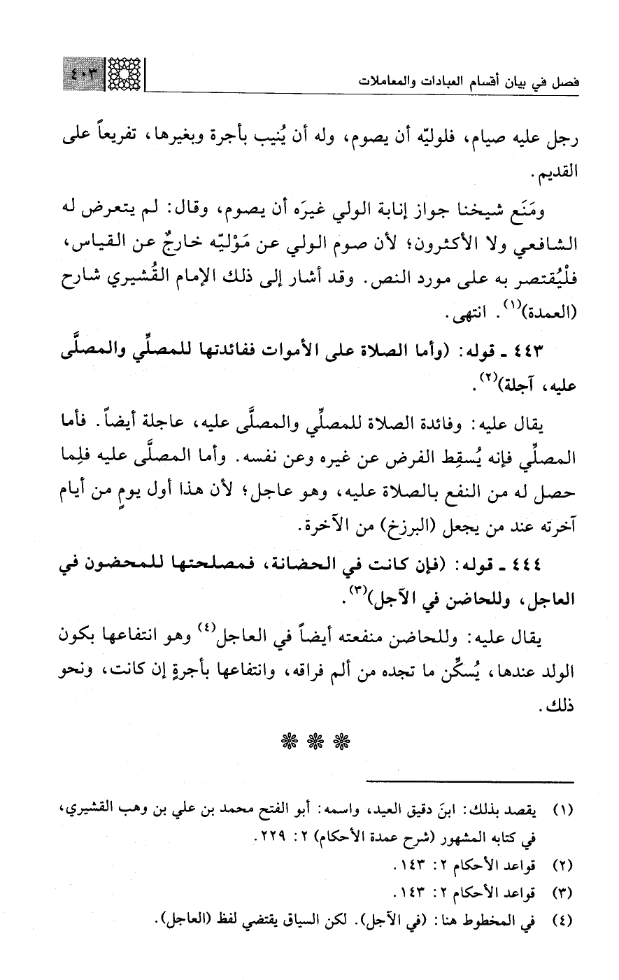 (¬1) يقصد بذلك: ابنَ دقيق العيد، واسمه: أبو الفتح محمد بن علي بن وهب القشيري، في كتابه المشهور (شرح عمدة الأحكام) 2: 229.