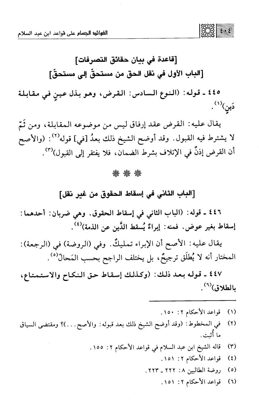 (¬4) قواعد الأحكام 2: 151.