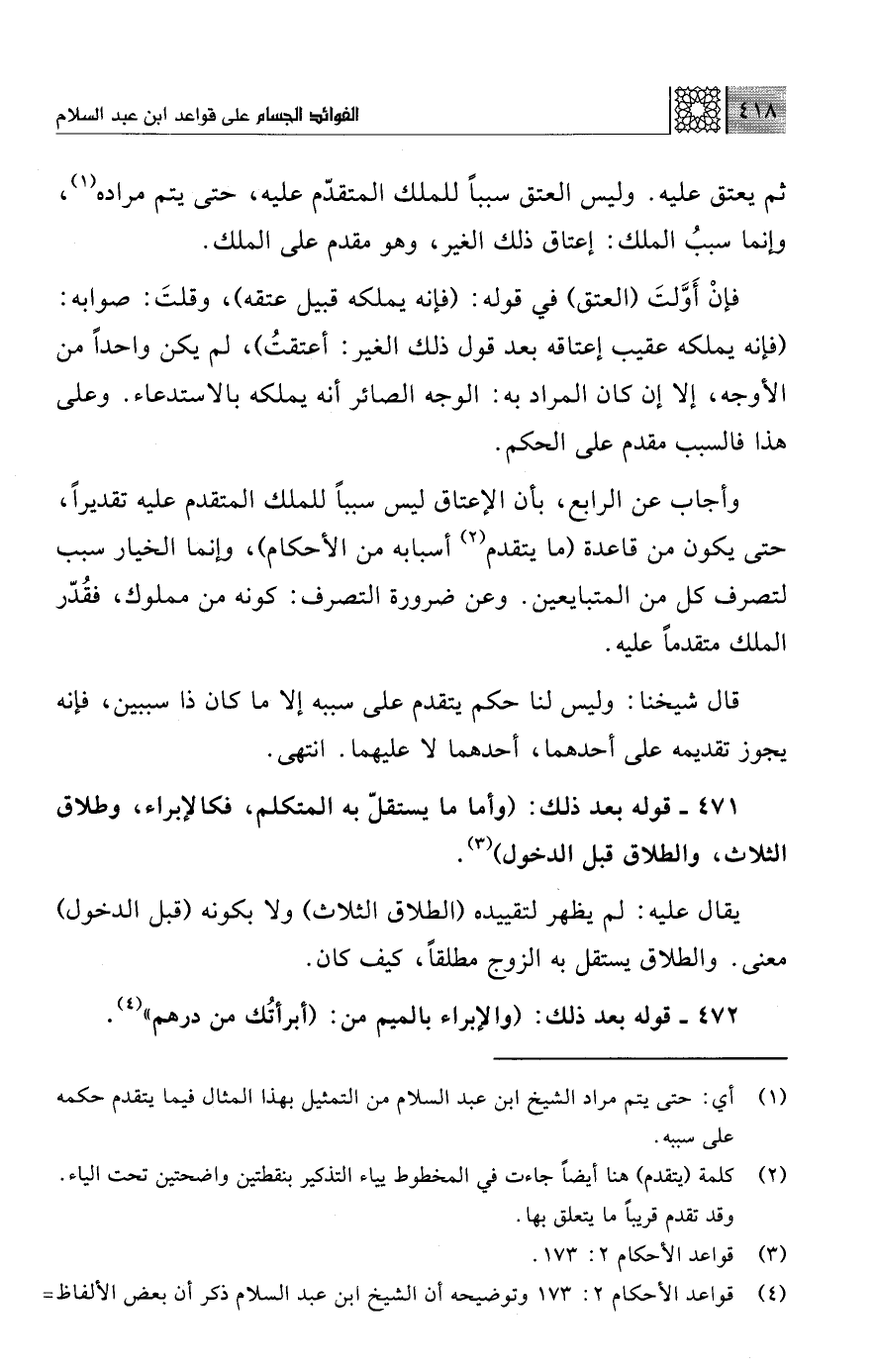 (¬4) قواعد الأحكام 2: 173 وتوضيحه أن الشيخ ابن عبد السلام ذكر أن بعض الألفاظ =