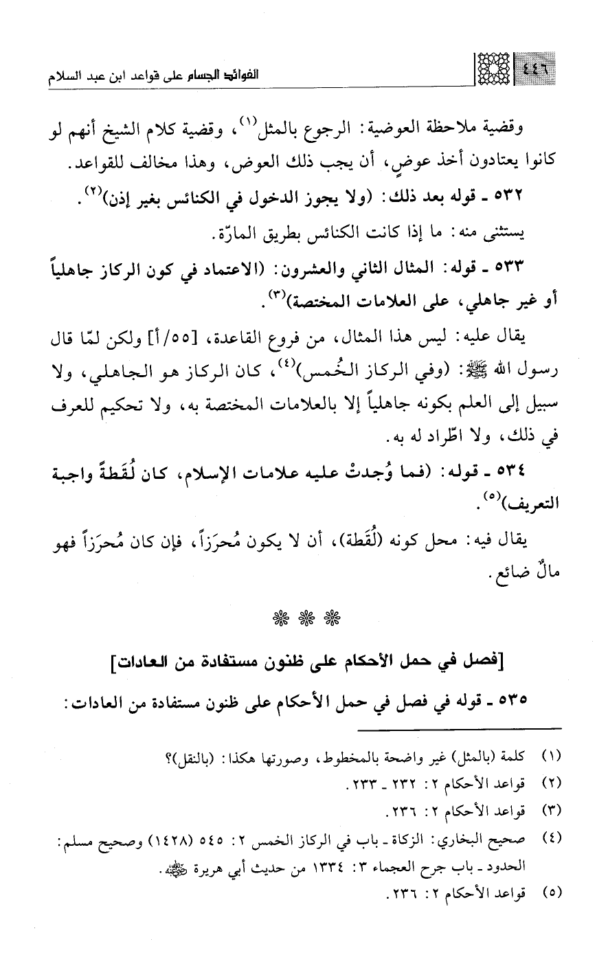 533 - قوله: المثال الثاني والعشرون: (الاعتماد في كون الركاز جاهليًّا أو غير جاهلي، على العلامات المختصة) (¬3).