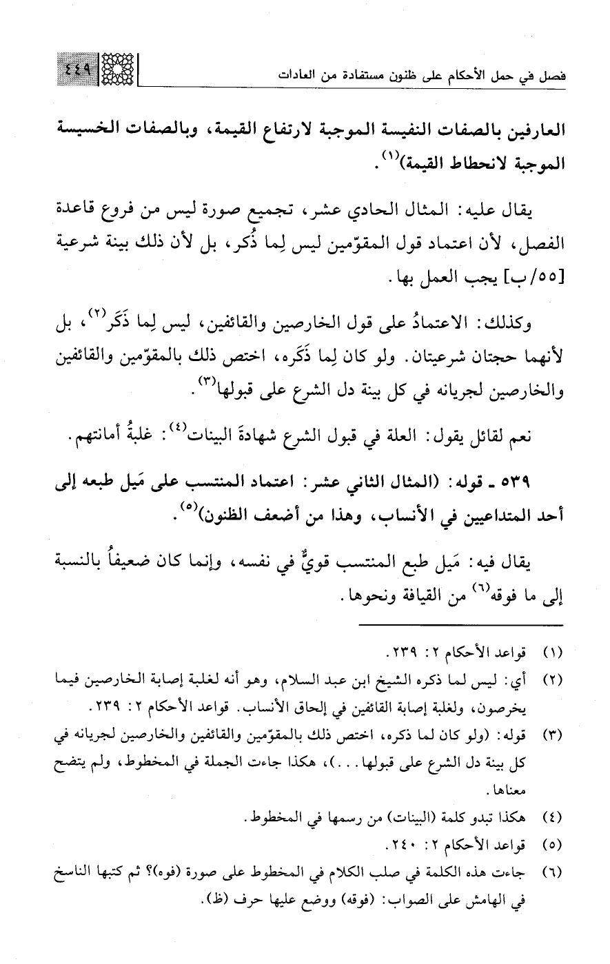 (¬2) أي: ليس لما ذكره الشيخ ابن عبد السلام، وهو أنه لغلبة إصابة الخارصين فيما يخرصون، ولغلبة إصابة القائفين في إلحاق الأنساب. قواعد الأحكام 2: 239.