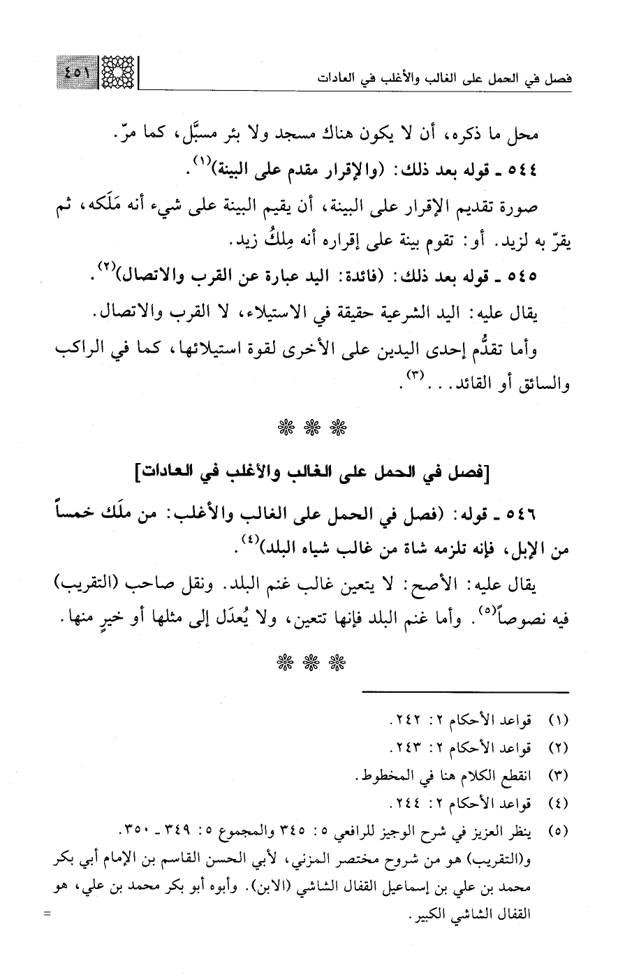 546 - قوله: (فصل في الحمل على الغالب والأغلب: من ملَك خمسًا من الإبل، فإنه تلزمه شاة من غالب شياه البلد) (¬4).