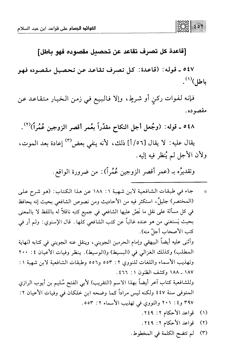 547 - قوله: (قاعدة: كل تصرف تقاعد عن تحصيل مقصوده فهو باطل) (¬1).