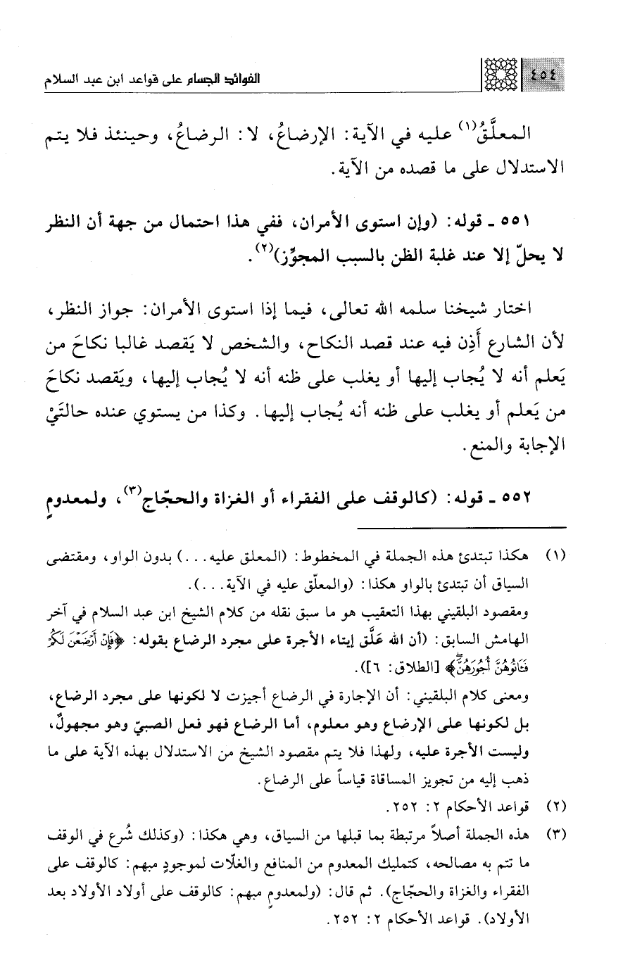 (¬2) قواعد الأحكام 2: 252.
