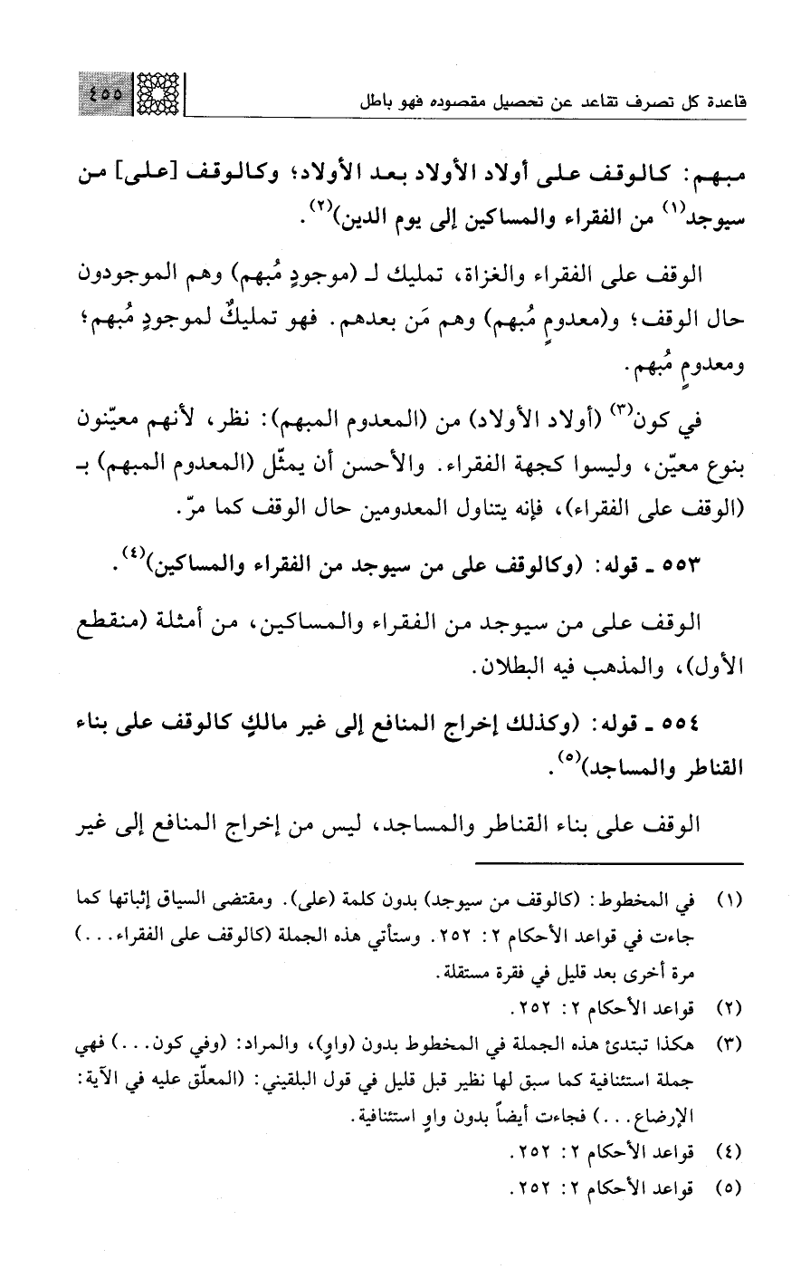 (¬1) في المخطوط: (كالوقف من سيوجد) بدون كلمة (على). ومقتضى السياق إثباتها كما جاءت في قواعد الأحكام 2: 252. وستأتي هذه الجملة (كالوقف على الفقراء ...) مرة أخرى بعد قليل في فقرة مستقلة.