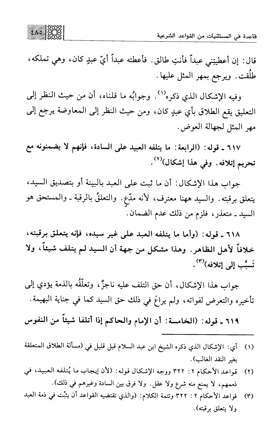 (¬2) قواعد الأحكام 2: 322 ووجه الإشكال قوله: (لأن إيجاب ما يُتلفه العبيد، في ذممهم، لا يمنع منه شرع ولا عقل. ولا فرق بين السادة وغيرهم في ذلك).