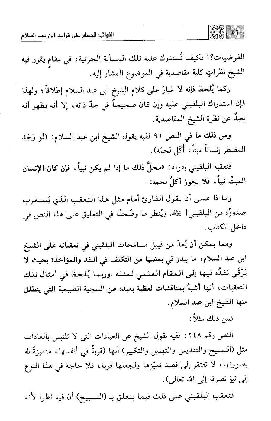 وكما يُلحظ فإنَّه لا غبارَ على كلام الشيخ ابن عبد السلام إطلاقًا؛ ولهذا فإن استدراك البلقيني عليه وإن كان صحيحًا في حدّ ذاته، إلا أنَّه يظهر أنه بعيدٌ عن نظرة الشيخ المقاصدية.