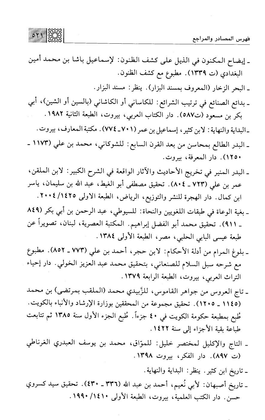 - إيضاح المكنون في الذيل على كشف الظنون: لإسماعيل باشا بن محمد أمين البغدادي (ت 1339). مطبوع مع كشف الظنون.