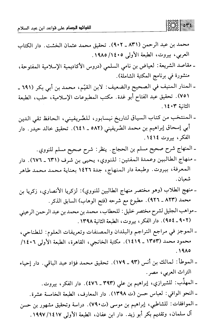 محمد بن عبد الرحمن (831 - 902). تحقيق محمد عثمان الخشت. دار الكتاب العربي، بيروت، الطبعة الأولى 1405/ 1985.
