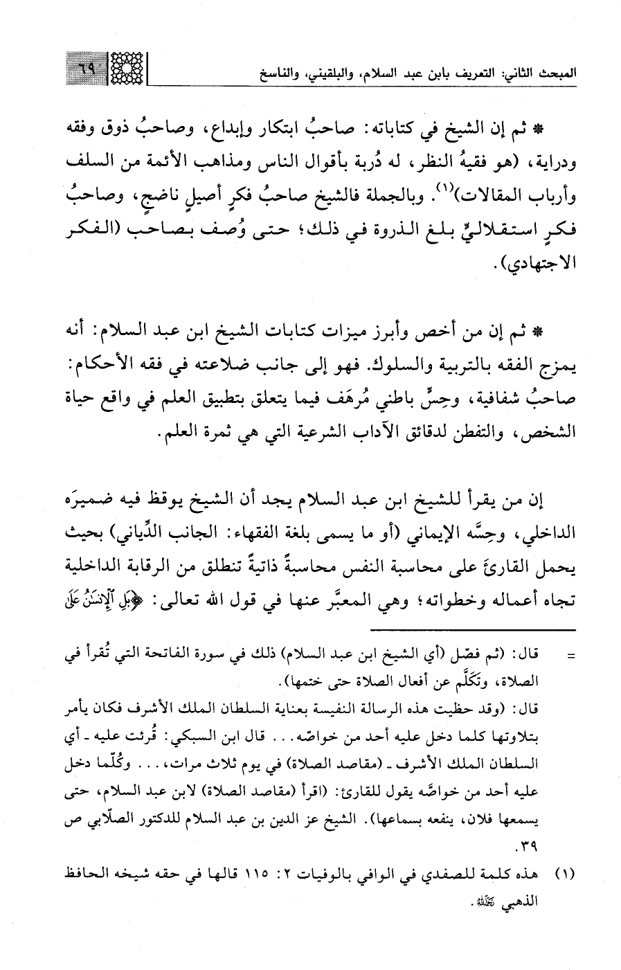 = قال: (ثم فصّل (أي الشيخ ابن عبد السلام) ذلك في سورة الفاتحة التي تُقرأ في الصلاة، وتكَلَّم عن أفعال الصلاة حتى ختمها).