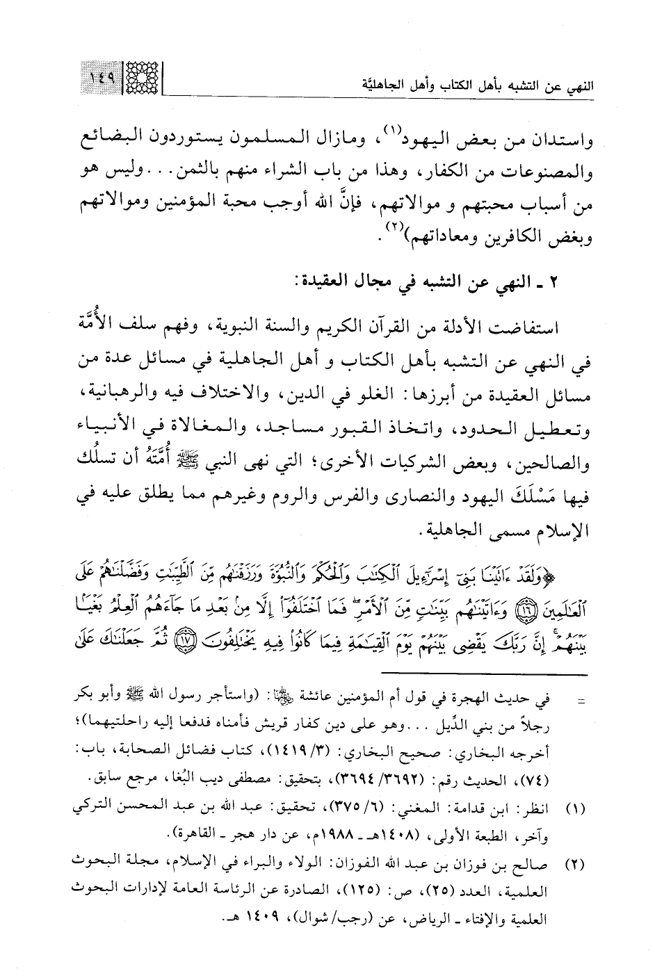 (¬2) صالح بن فوزان بن عبد اللَّه الفوزان: الولاء والبراء في الإسلام، مجلة البحوث العلمية، العدد (25)، ص: (125)، الصادرة عن الرئاسة العامة لإدارات البحوث العلمية والإفتاء - الرياض، عن (رجب/ شوال)، 1409 هـ.