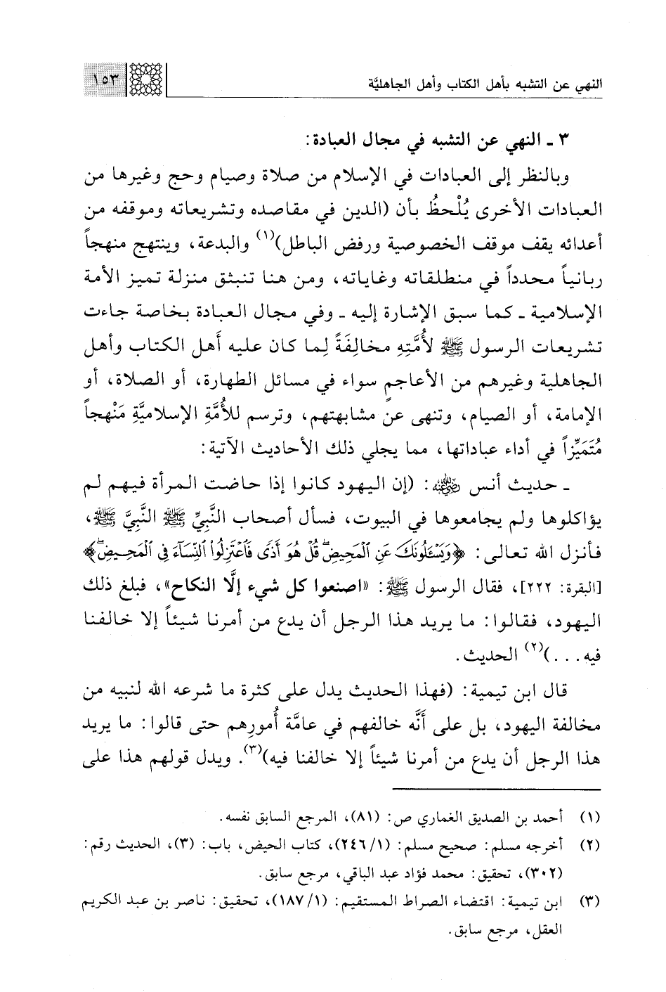 (¬3) ابن تيمية: اقتضاء الصراط المستقيم: (1/ 187)، تحقيق: ناصر بن عبد الكريم العقل، مرجع سابق.