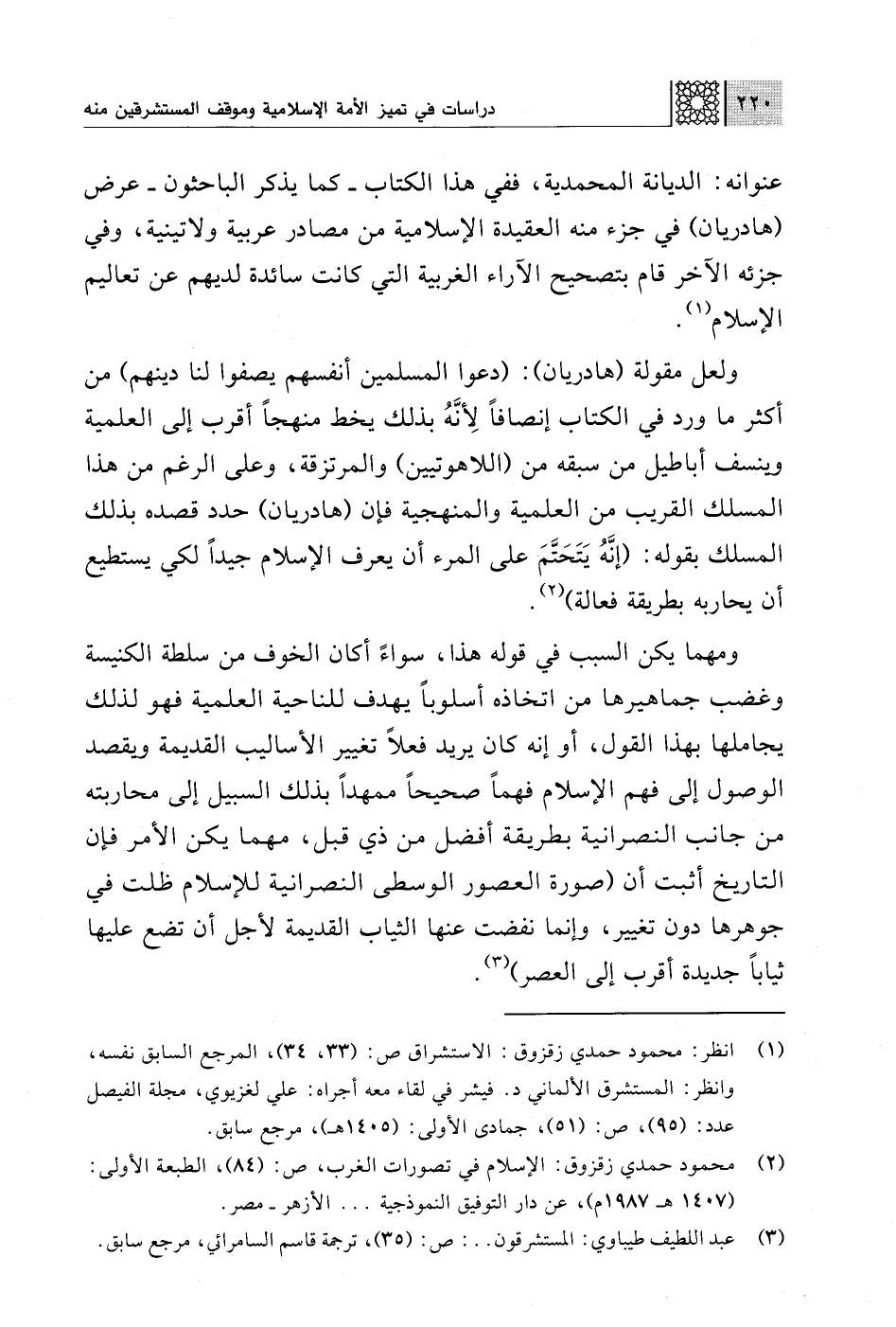 (¬2) محمود حمدي زقزوق: الإسلام في تصورات الغرب، ص: (84)، الطبعة الأولى: (1407 هـ - 1987 م)، عن دار التوفيق النموذجية. . . الأزهر - مصر.
