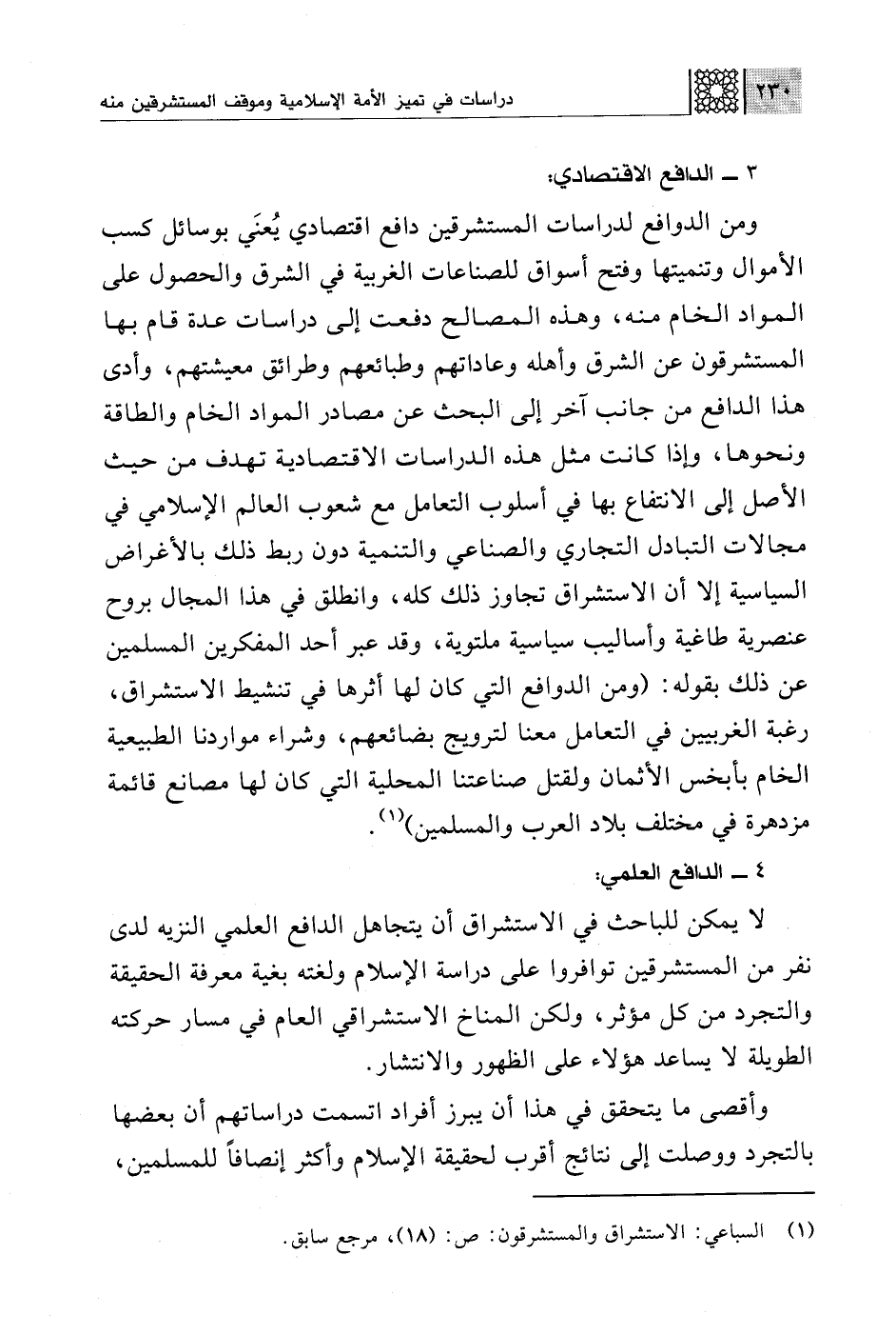 (¬1) السباعي: الاستشراق والمستشرقون: ص: (18)، مرجع سابق.