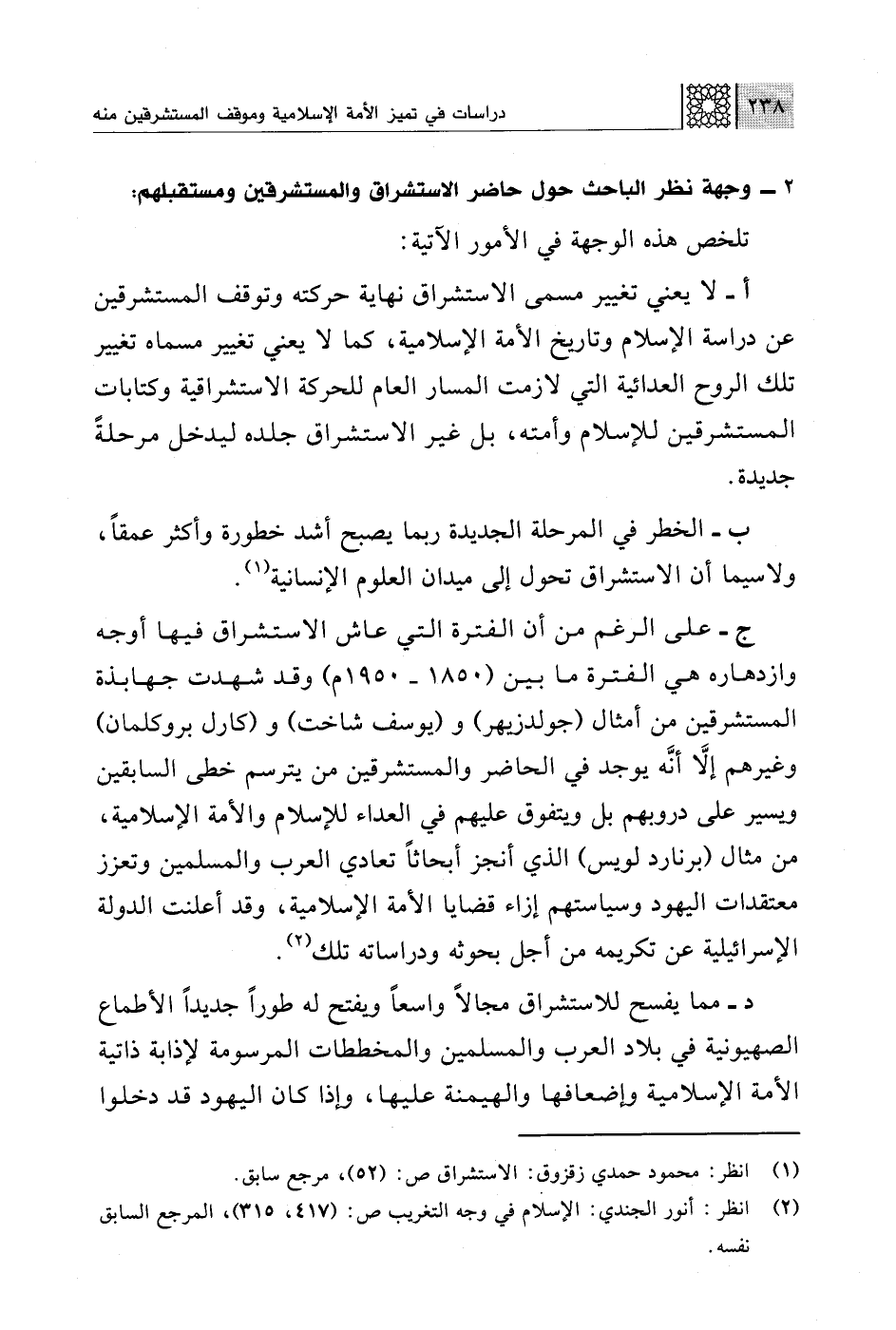(¬2) انظر: أنور الجندي: الإسلام في وجه التغريب ص: (417، 315)، المرجع السابق نفسه.
