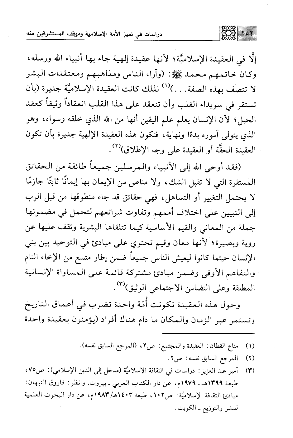 (¬3) أمير عبد العزيز: دراسات في الثقافة الإسلاميَّة (مدخل إلى الدين الإسلامي): ص 75، طبعة 1399 هـ - 1979 م، عن دار الكتاب العربي - بيروت. وانظر: فاروق النبهان: مبادئ الثقافة الإسلاميَّة: ص 102، طبعة 1403 هـ / 1983 م، عن دار البحوث العلمية للنشر والتوزيع - الكويت.