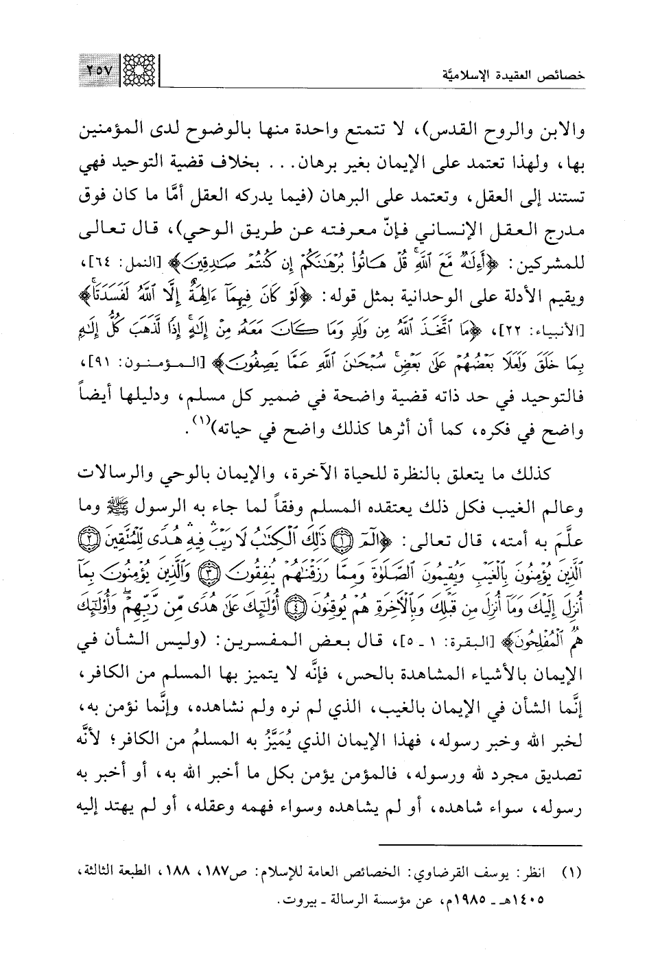 (¬1) انظر: يوسف القرضاوي: الخصائص العامة للإسلام: ص 187، 188، الطبعة الثالثة، 1405 هـ - 1985 م، عن مؤسسة الرسالة - بيروت.