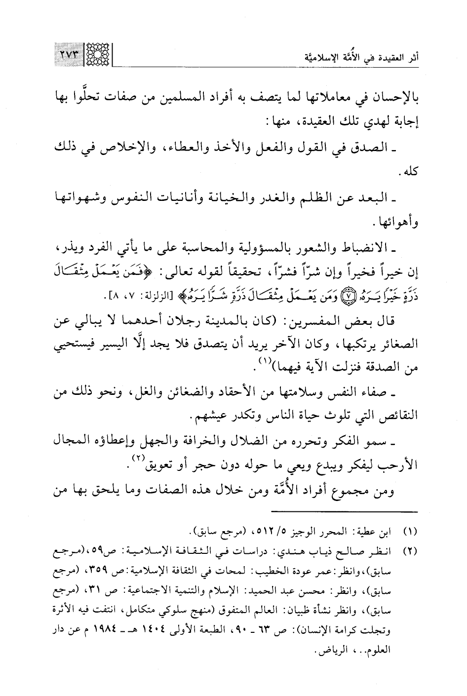 (¬2) انظر صالح ذياب هندي: دراسات في الثقافة الإسلامية: ص 59، (مرجع سابق)، وانظر: عمر عودة الخطيب: لمحات في الثقافة الإسلامية؛ ص 359، (مرجع سابق)، وانظر: محسن عبد الحميد: الإسلام والتنمية الاجتماعية: ص 31، (مرجع سابق)، وانظر نشأة ظبيان: العالم المتفوق (منهج سلوكي متكامل، انتفت فيه الأثرة وتجلت كرامة الإنسان): ص 63 - 95، الطبعة الأولى 1454 هـ - 1984 م عن دار العلوم. .، الرياض.