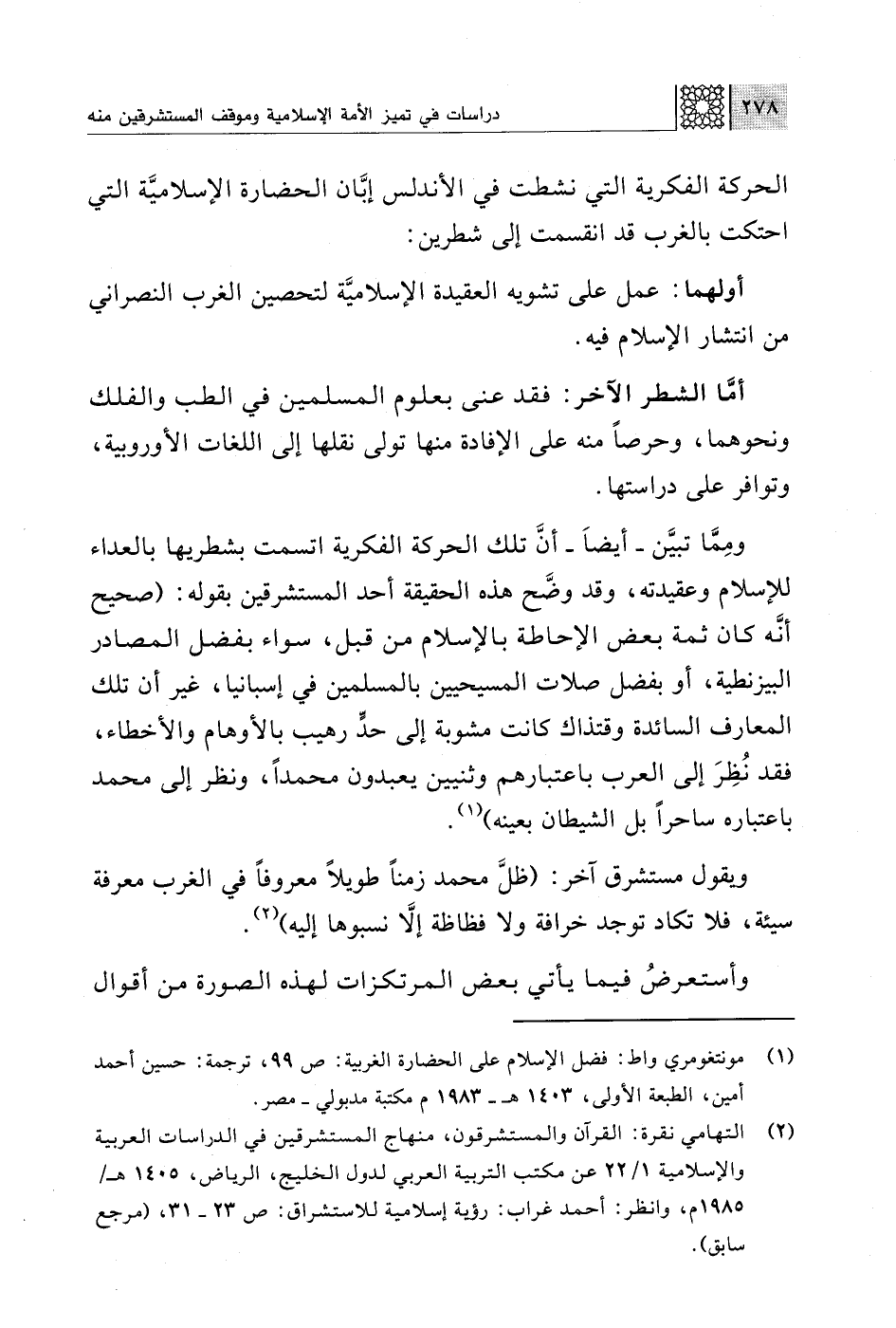 (¬2) التهامي نقرة: القرآن والمستشرقون، منهاج المسثشرقين في الدراسات العربية والإسلامية 1/ 22 عن مكتب التربية العربي لدول الخليج، الرياض، 1405 هـ/ 1985 م، وانظر: أحمد غراب: رؤية إسلامية للاستشراق: ص 23 - 31، (مرجع سابق).