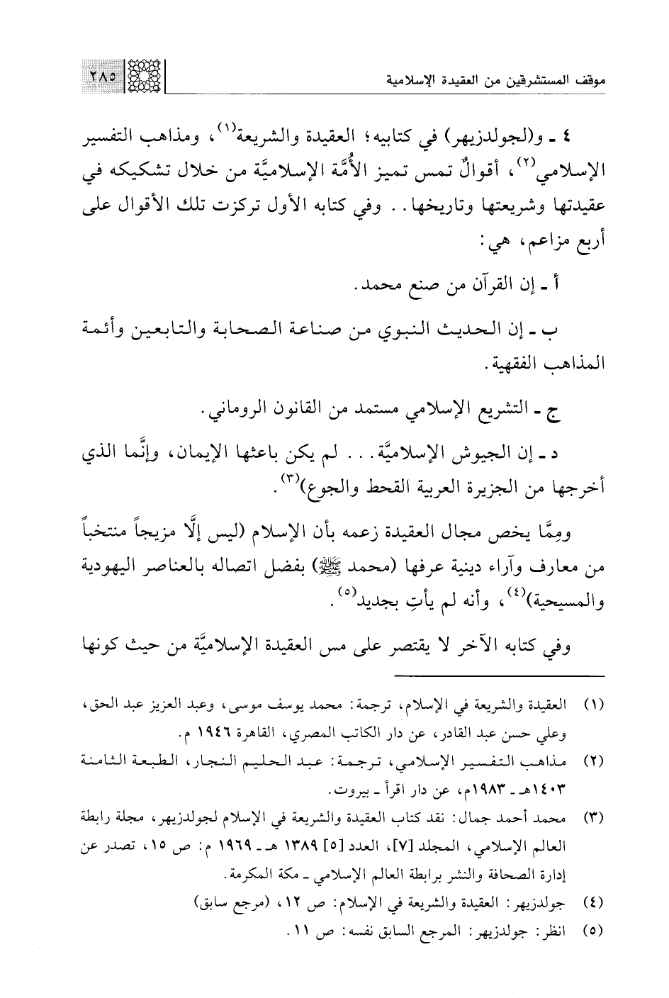 (¬4) جولدزيهر: العقيدة والشريعة في الإسلام: ص 12، (مرجع سابق)