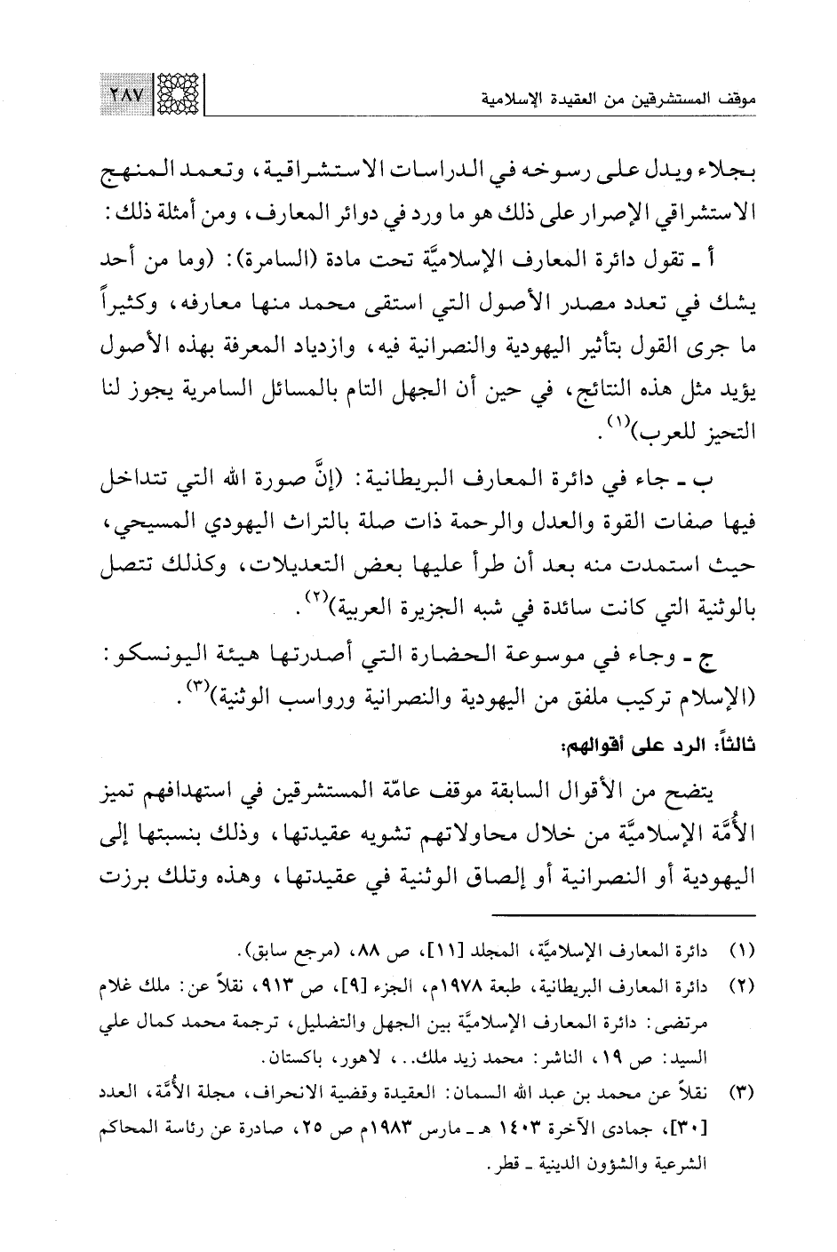 (¬3) نقلًا عن محمد بن عبد اللَّه السمان: العقيدة وقضية الانحراف، مجلة الأُمَّة، العدد [30]، جمادى الآخرة 1403 هـ - مارس 1983 م ص 25، صادرة عن رئاسة المحاكم الشرعية والشؤون الدينية - قطر.