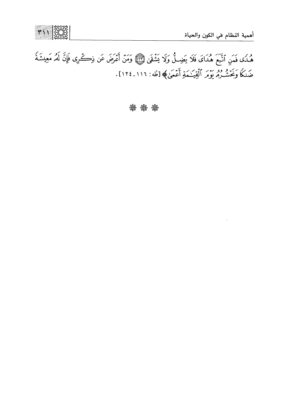 هُدًى فَمَنِ اتَّبَعَ هُدَايَ فَلَا يَضِلُّ وَلَا يَشْقَى (123) وَمَنْ أَعْرَضَ عَنْ ذِكْرِي فَإِنَّ لَهُ مَعِيشَةً ضَنْكًا وَنَحْشُرُهُ يَوْمَ الْقِيَامَةِ أَعْمَى} [طه: 116 - 124].