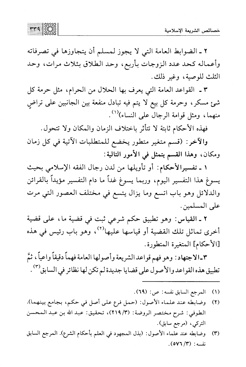 3 - الاجتهاد: وهو فهم قواعد الشريعة وأصولها العامة فهمًا دقيقًا واعيًا، ثمَّ تطبيق هذه القواعد والأصول على قضايا جديدة لم تكن لها نظائر في السابق (¬3).